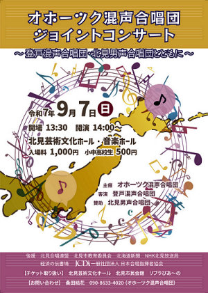 9月7日(日)オホーツク混声合唱団ジョイントコンサート 於:北見芸術文化ホール