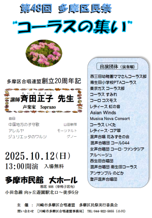 10月12日(日)第48回 多摩区民祭“コーラスの集い” 於:多摩市民館大ホール